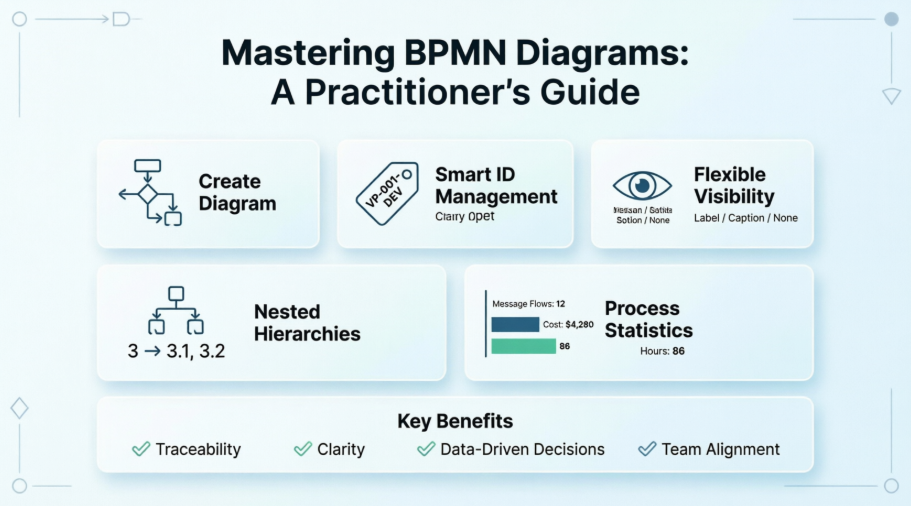 If you’re considering diving into BPMN modeling: start small. Create one diagram, experiment with ID formatting, and try the statistic feature on a pilot process. You’ll likely find, as I did, that the clarity and traceability these tools provide pay dividends in reduced rework, clearer communication, and more confident decision-making.