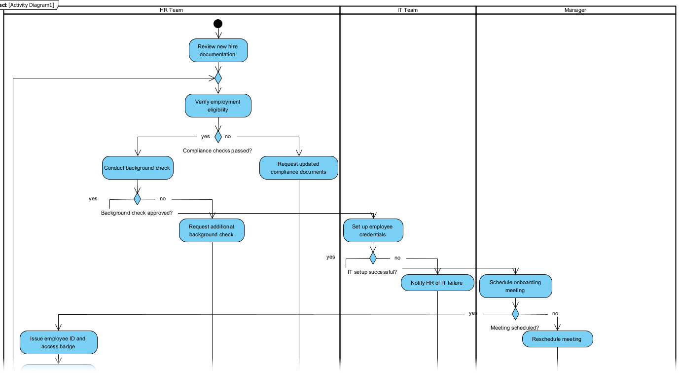 Unlike static flowcharts, activity diagrams handle complex logic and concurrent tasks—perfect for multi-department processes like onboarding.